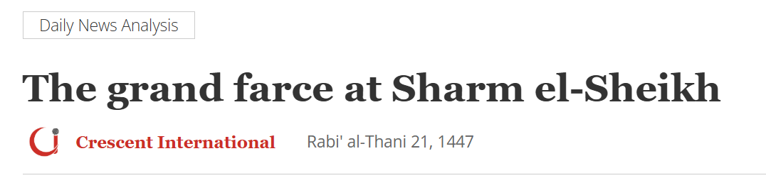 There have also been so many lies surrounding the disgraceful piece of theatre that was the Israeli-imposed “peace deal” and associated sham Sharm-el-Sheik summit, which were only concocted to relieve the genocidal Zionist regime of the pressure from world public opinion. It has worked, for now.