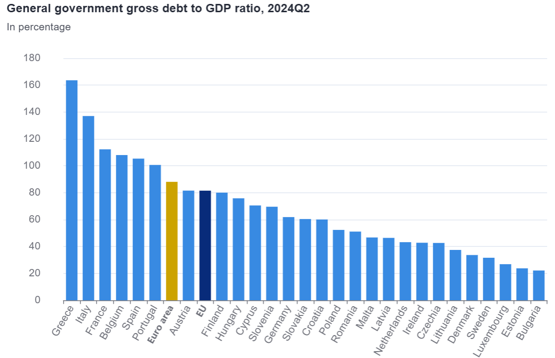 fiscal policy. The average Euro area debt is a mind-boggling 85% of GDP,